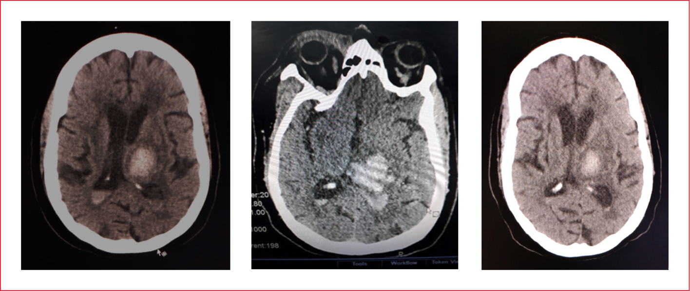 Conclusiones: se diagnosticó de Hemorragia Intracerebral complicada egresada viva de los cuidados intensivos.
