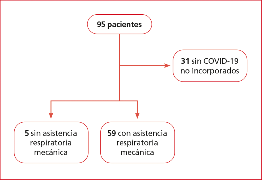 Resultados: 64 de los 95 pacientes ingresados tenían COVID-19, y fueron divididos en dos grupos (supervivientes y no supervivientes). La mediana de la edad era de 57 años (hombres 68,75%). El 92,10% requirió asistencia respiratoria mecánica (mediana 10 días), sin diferencias significativas entre ambos grupos; el 50% requirió la posición prona, sin diferencias entre ambos grupos, aunque los no supervivientes tuvieron más ciclos de prono; y el 81,30% necesitó bloqueantes neuromusculares. La incidencia de neumonía asociada a la ventilación mecánica (34,6% por Klebsiella pneumoniae carbapenemasa) y de disfunción de múltiples órganos fue alta (56,04% y 42%, respectivamente) (p 0,0097). El puntaje APACHE II al ingreso fue de 15 (p 0,0013). La tasa de mortalidad global fue del 71,87%.