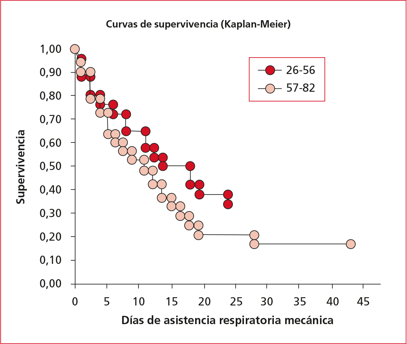 Variables de interés: Edad, sexo, APACHE II, requerimiento de asistencia respiratoria mecánica, de posición prona, de bloqueantes neuromusculares y vasopresores, y de terapia de reemplazo renal; neumonía asociada a la ventilación mecánica, tromboembolismo pulmonar, disfunción de múltiples órganos.