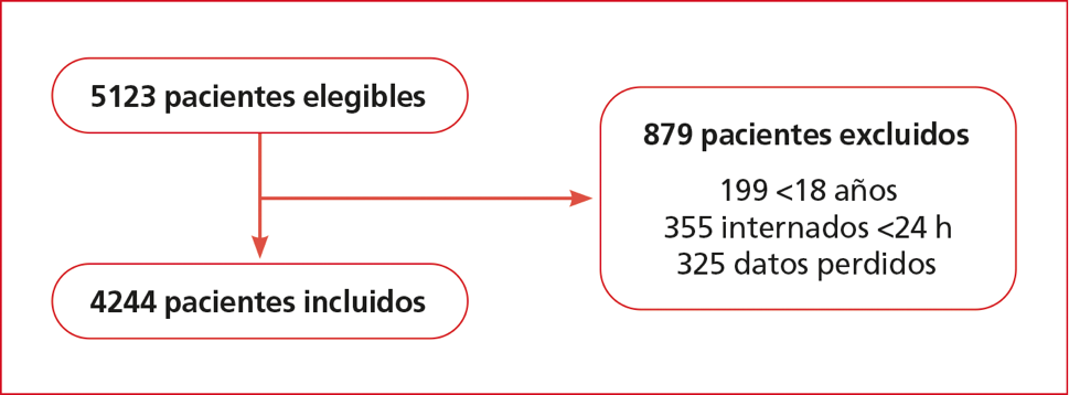 interés: Cantidad de transfusiones de concentrados de hematíes y muerte en la UCI. Resultados: Se analizaron 4244 pacientes (hombres 64,6%)