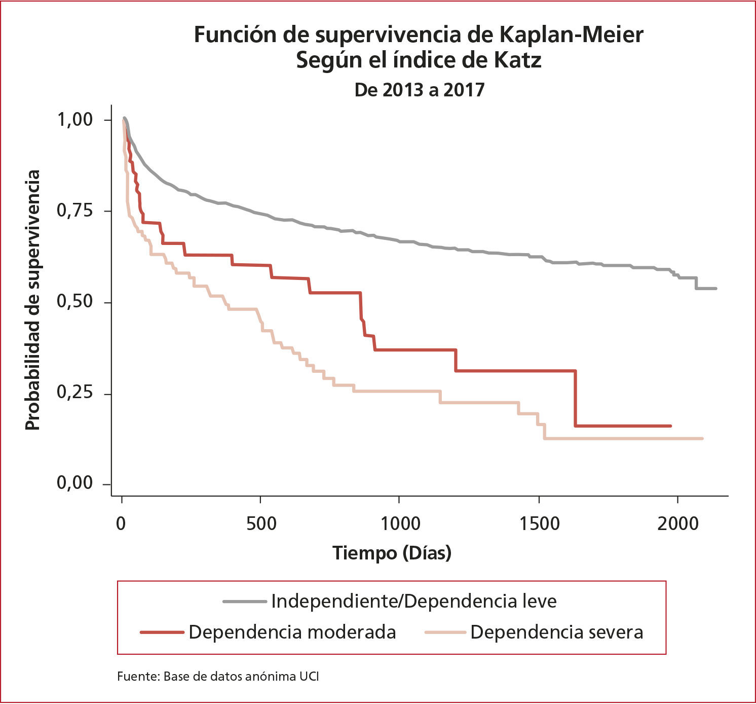 supervivencia pos-UCI y relación con indicadores de dependencia funcional. Resultados: