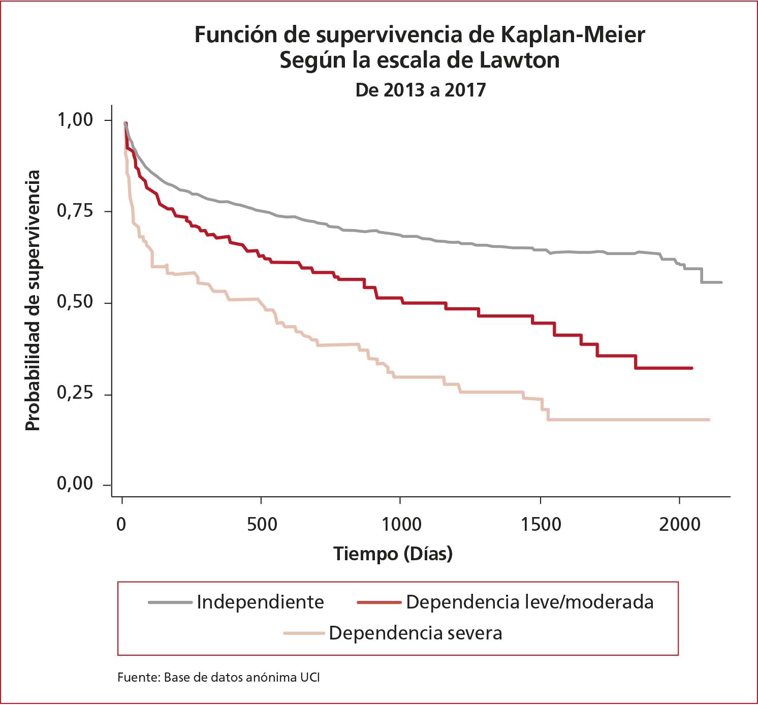 according to Lawton scale (HR 1.71; IC95% 1.23-2.60). Conclusions: The higher the degree of baseline dependence in