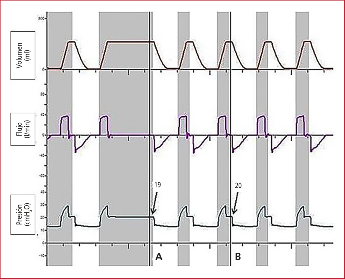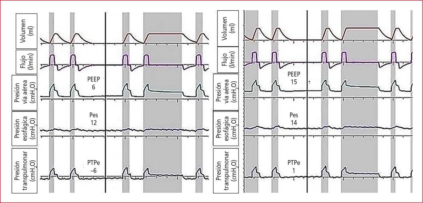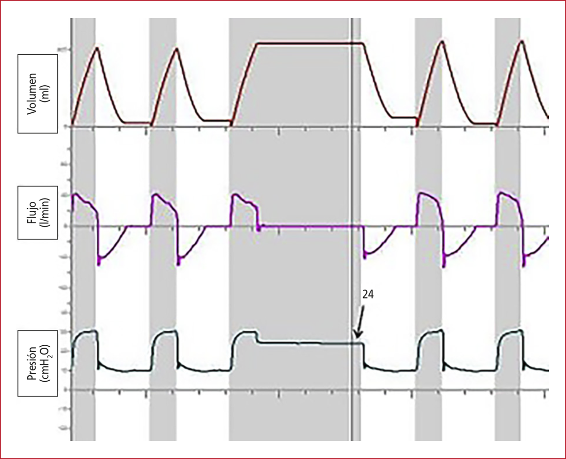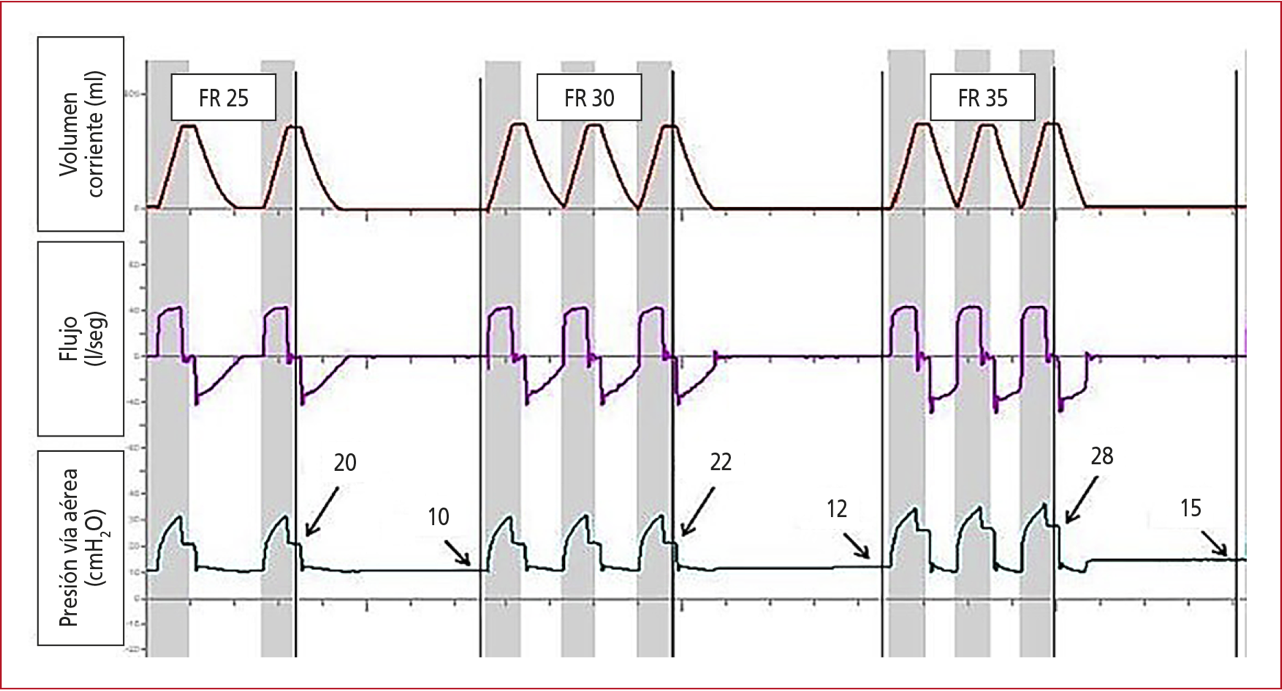 Además, la aparición de respiración espontánea en los modos controlados por presión, como PC-CMV, ventilación controlada por volumen regulada por presión (pressure-regulated volume control) y ventilación con liberación de presión en la vía aérea (airway pressure release ventilation), permite que el VC entregado sea variable, lo que puede exponer al parénquima pulmonar a tensión (stress) y deformación (strain) excesivas por aumento de la presión transpulmonar (PTP) y del VC.45-49