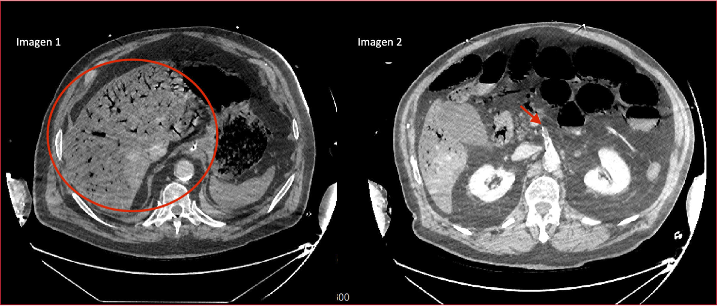 portal masiva (Figura, círculo rojo) secundaria a isquemia intestinal por trombosis de
